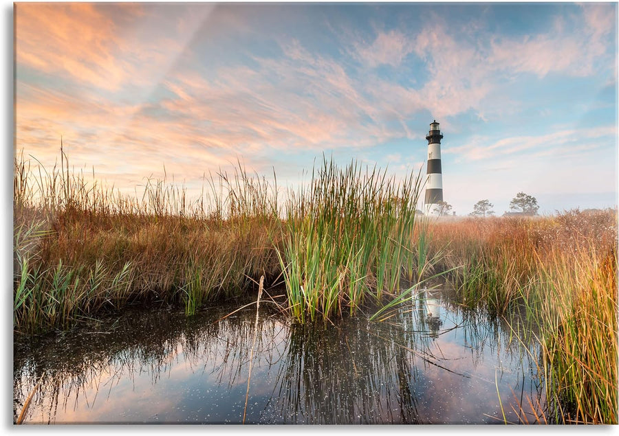 Pixxprint Glasbild | Wandbild aus Echtglas | Leuchtturm | 80x60 cm | inkl. Aufhängung und Abstandsha