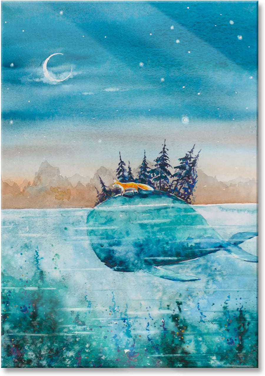 Pixxprint Glasbild | Wandbild aus Echtglas | Fuchs reitet auf Wal bei Nacht | 60x80 cm | inkl. Aufhä