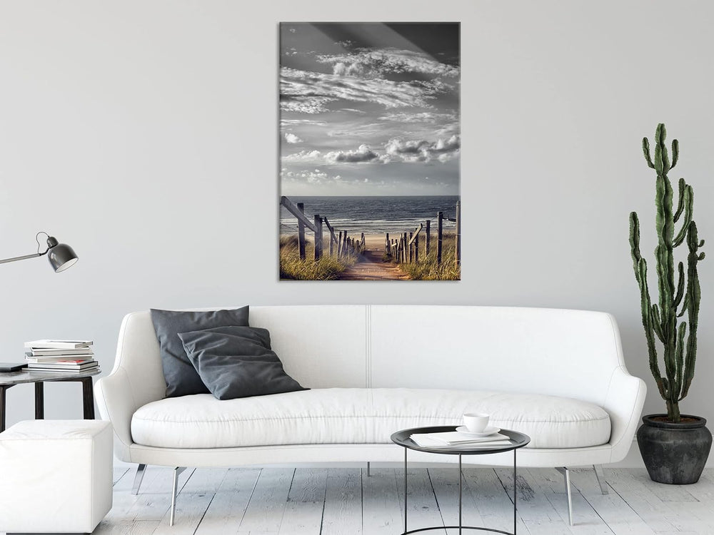 Pixxprint Glasbild | Wandbild aus Echtglas | Weg zum Strand am Meer | 70x100 cm | inkl. Aufhängung u