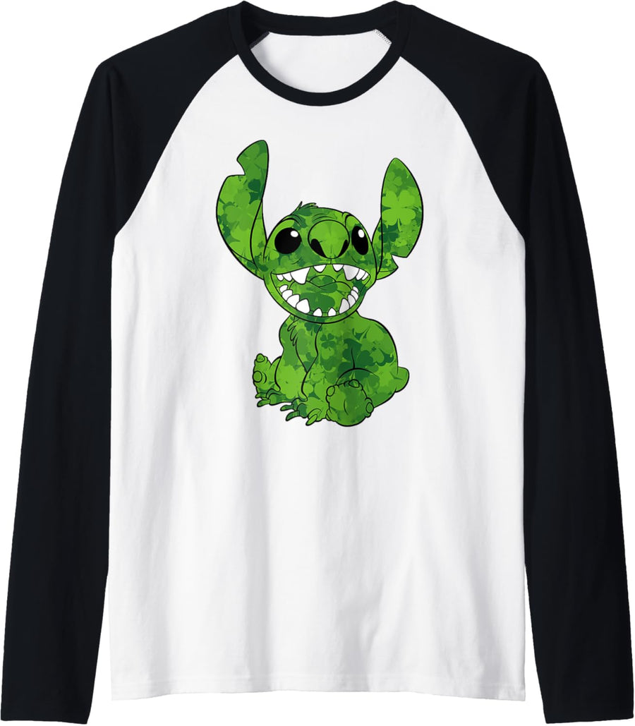 Disney Lilo & Stitch St. Patrick's Tag Stitch Clover Fill Raglan