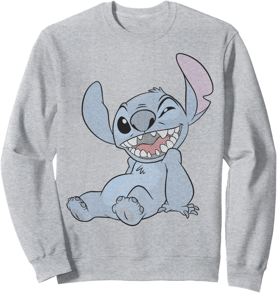 Disney Lilo & Stitch Sitting Smiling Distressed Mouth Open Sweatshirt