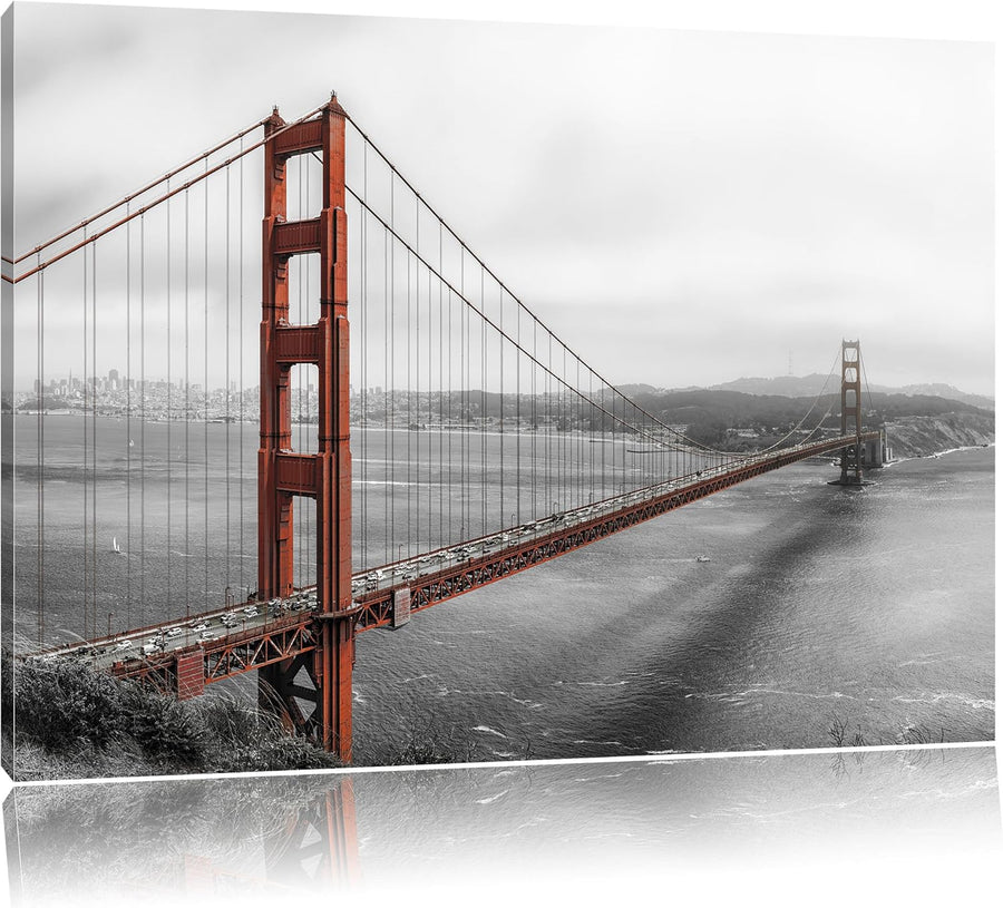 Pixxprint Golden Gate Bridge San Francisco Black and White, Format: 100x70 auf Leinwand, XXL riesige