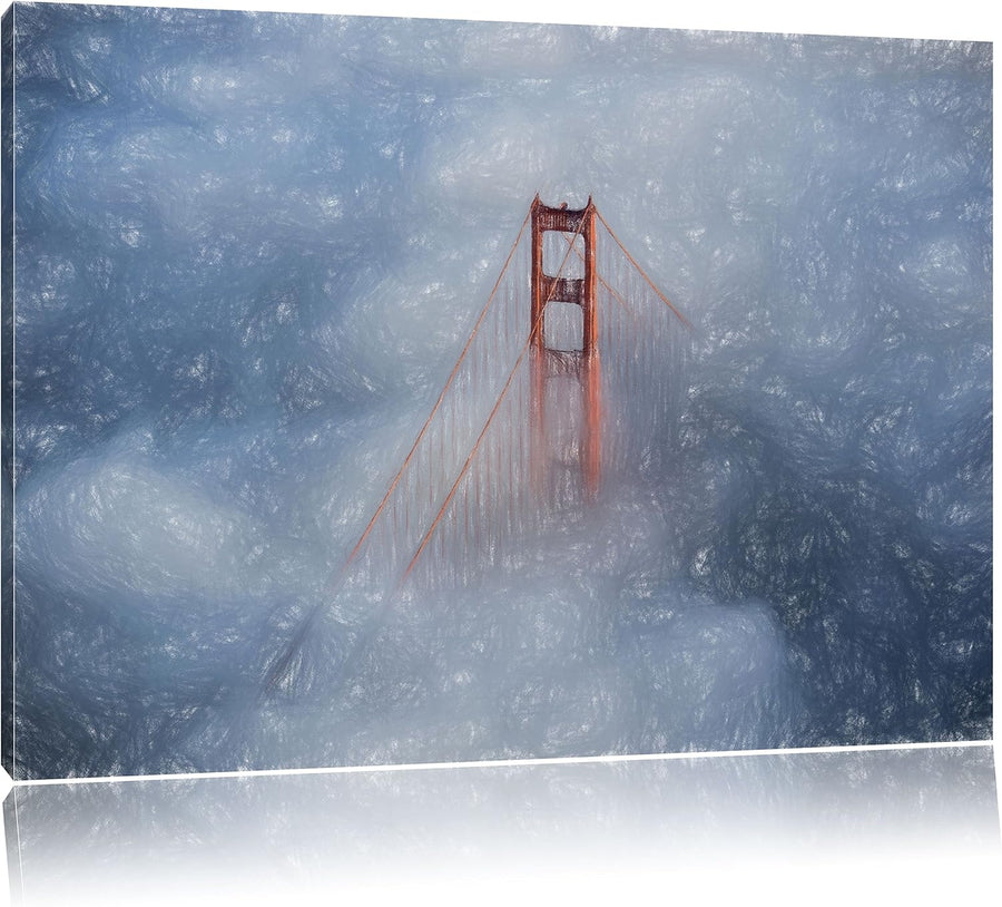 Pixxprint Golden Gate Bridge über den Wolken Kunst Buntstift Effekt, Format: 100x70 auf Leinwand, XX