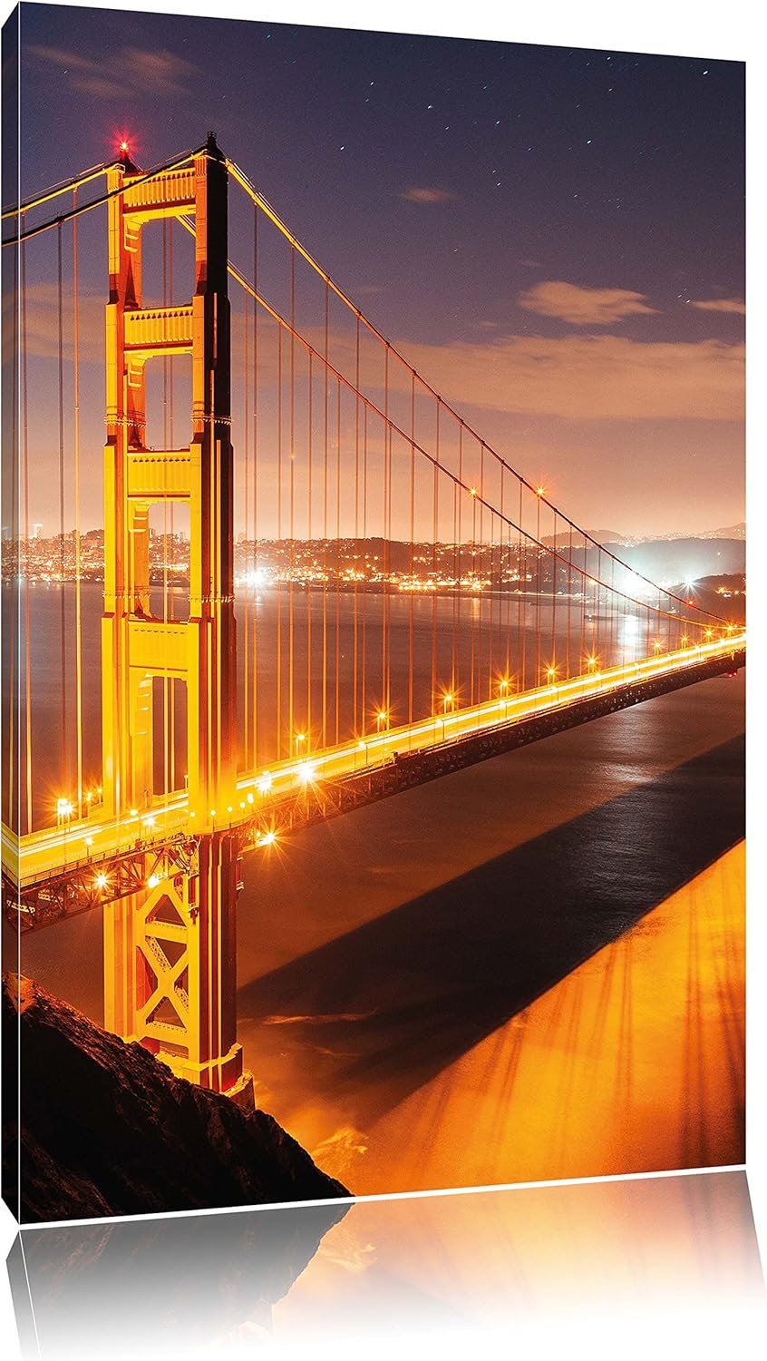 Pixxprint Golden Gate Bridge bei Nacht als Leinwandbild/Grösse: 100x70 cm/Wandbild/Kunstdruck/fertig