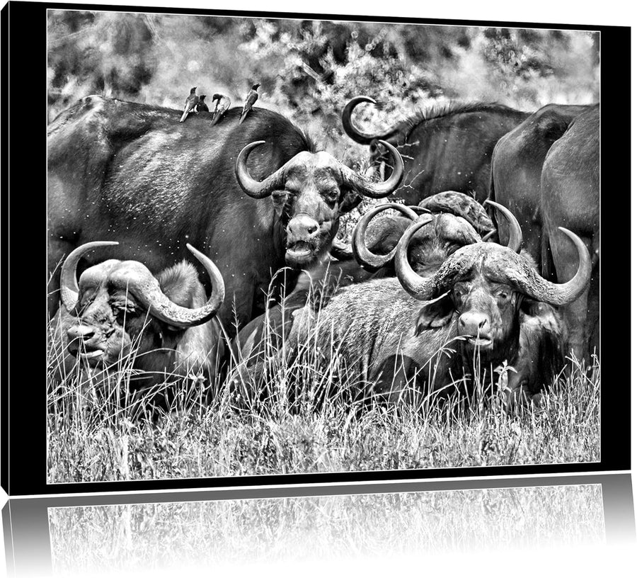 Pixxprint grosse Kaffernbüffel Herde als Leinwandbild/Grösse: 100x70 cm/Wandbild/Kunstdruck/fertig b