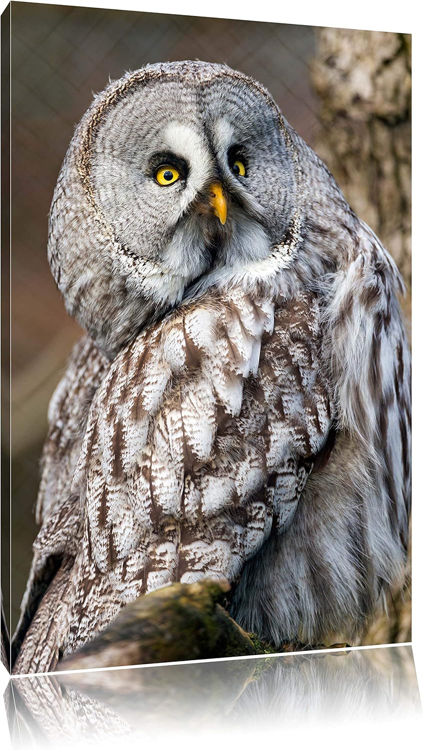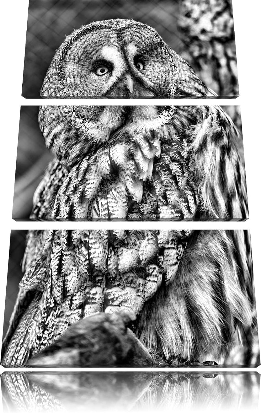 Pixxprint grosse Eule auf AST als Leinwandbild/Grösse: 3 Teilig (120x80) cm/Wandbild/Kunstdruck/fert