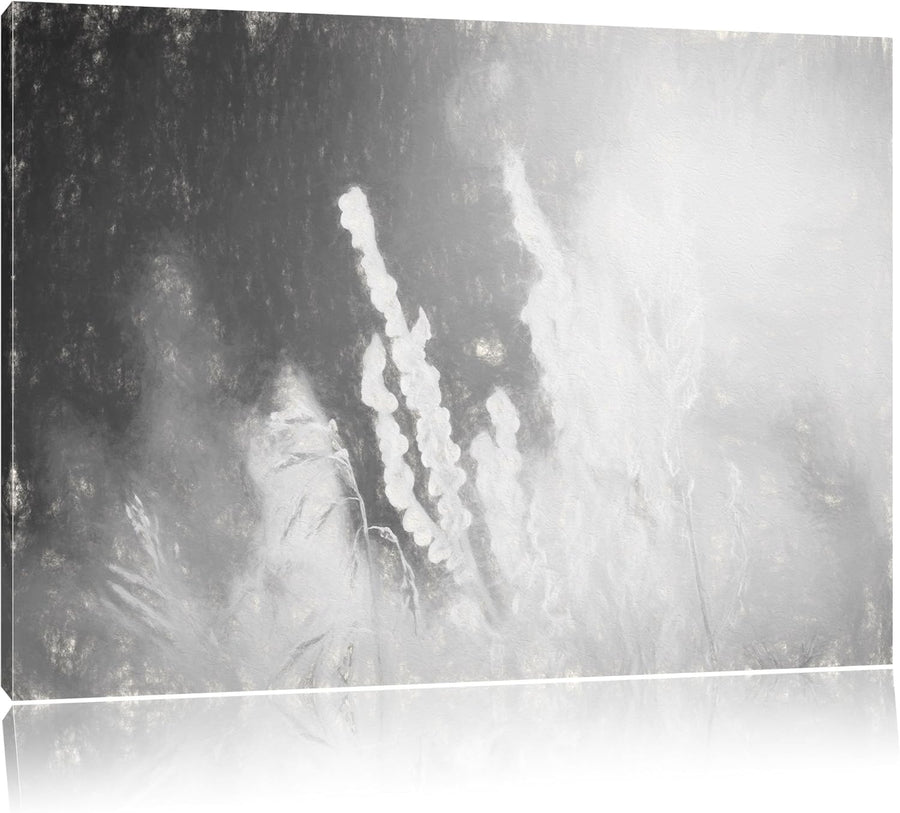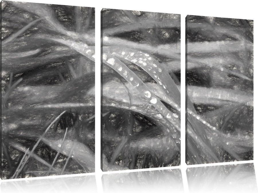 Pixxprint Grashalme Kohle Effekt 3-Teiler Leinwandbild 120x80 Bild auf Leinwand