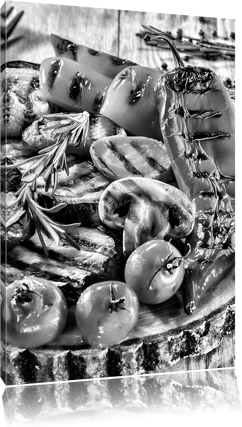 Pixxprint Grillplatte auf Baumstammteller / 100x70cm Leinwandbild bespannt auf Holzrahmen/Wandbild K