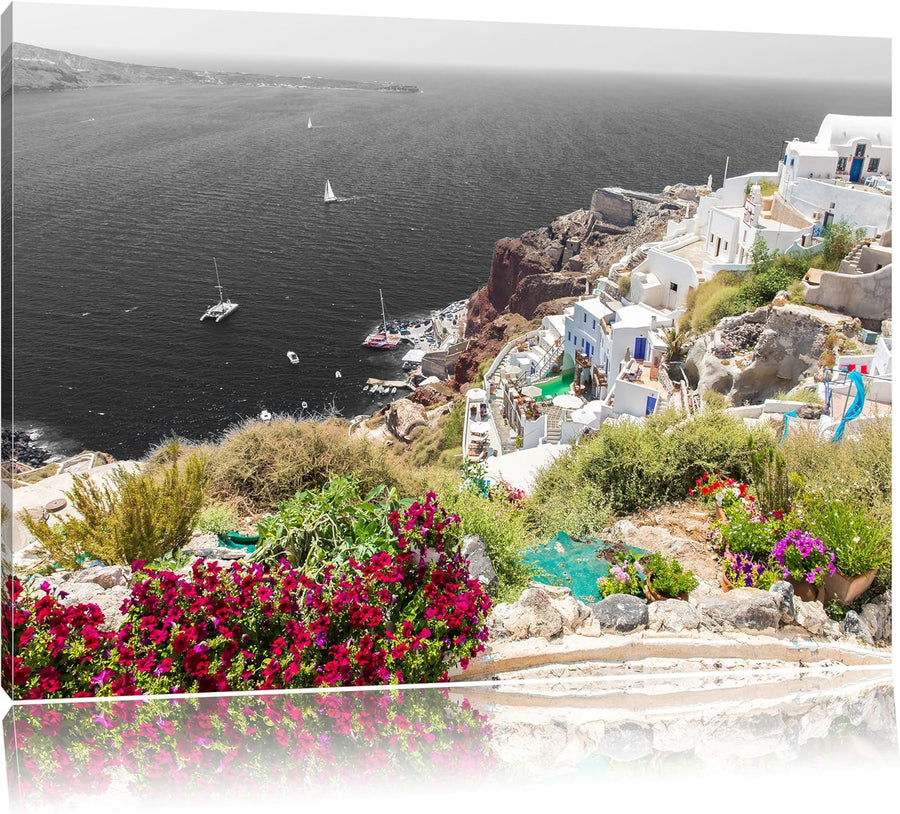 Pixxprint Griechische Küste als Leinwandbild/Grösse: 100x70 cm/Wandbild/Kunstdruck/fertig bespannt,