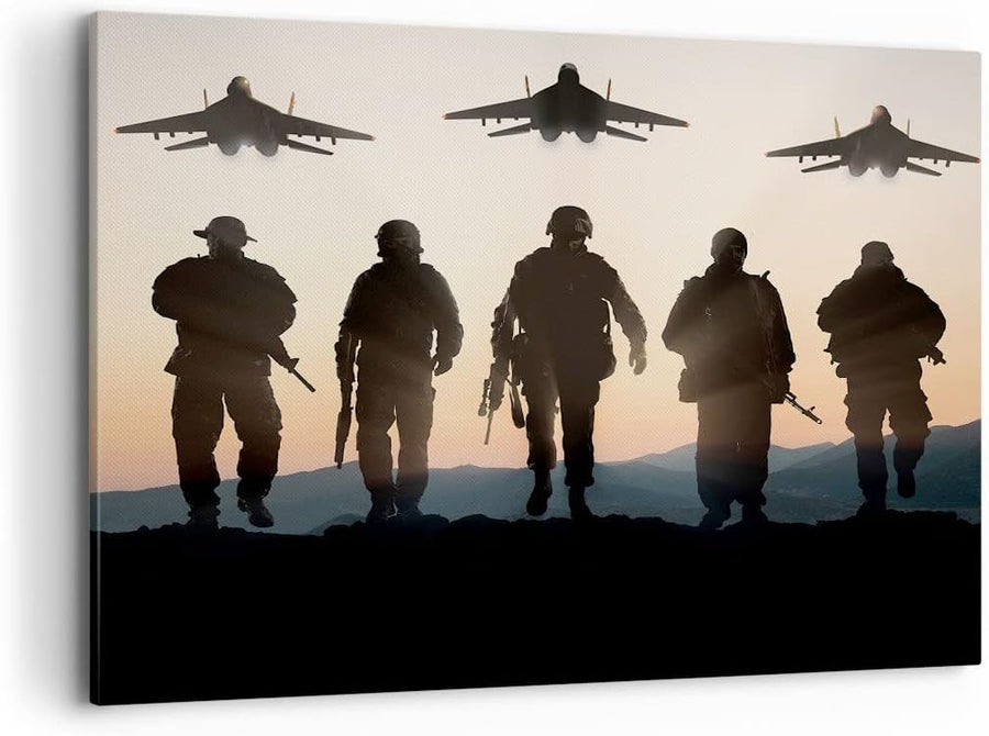Bilder auf Leinwand 100x70cm Leinwandbild mit Rahmen Armee Militaria Gross Wanddeko Bild Schlafzimme