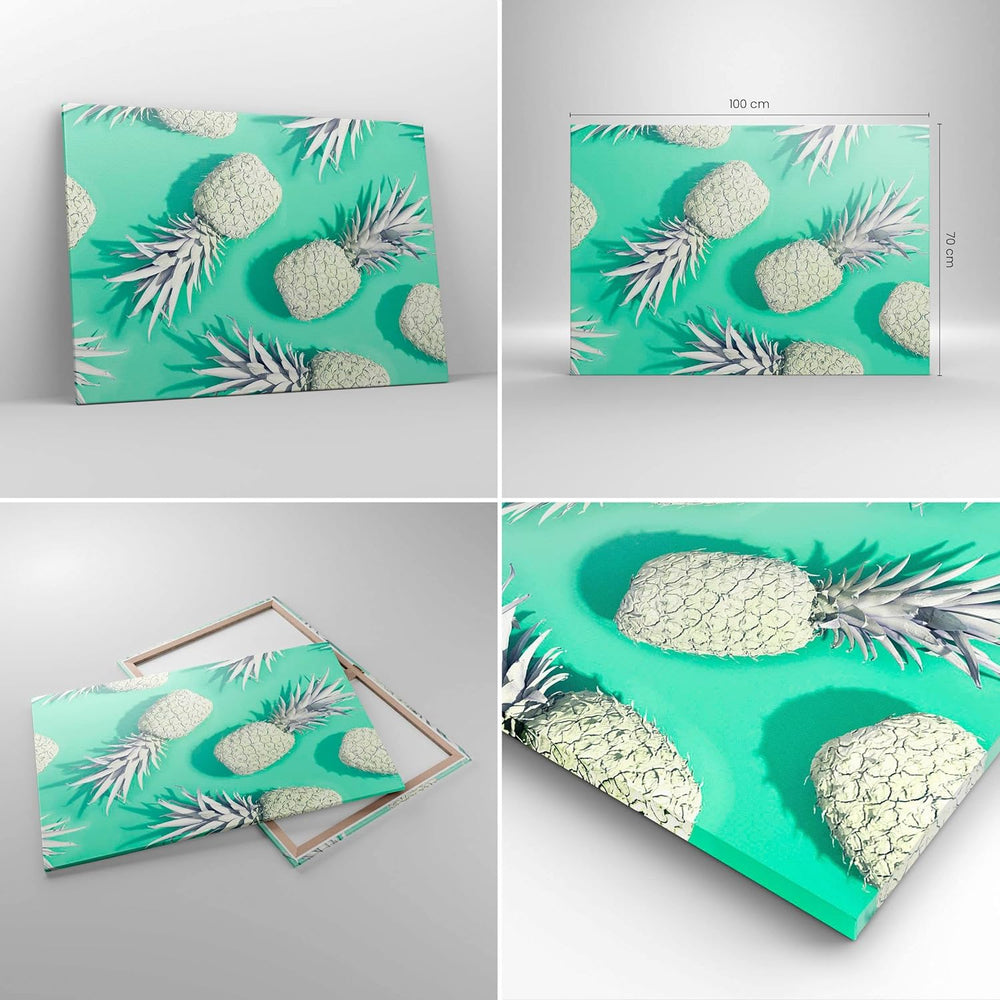 Bilder auf Leinwand 100x70cm Leinwandbild mit Rahmen Ananas Obst Saft Gross Wanddeko Bild Schlafzimm