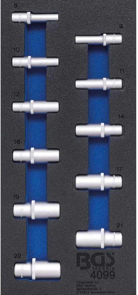BGS 4059 | Werkstattwageneinlage 1/3: Steckschlüssel-Einsätze Sechskant | tief |11-tlg. Einlage inkl