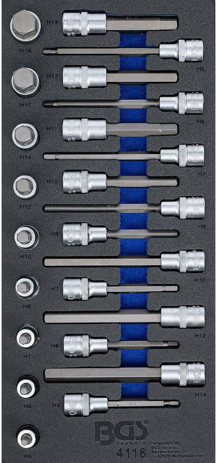 BGS 4130 | Werkstattwageneinlage 1/3: Kraft-Steckschlüssel-Einsätze Sechskant | 20-tlg. Satz, Satz