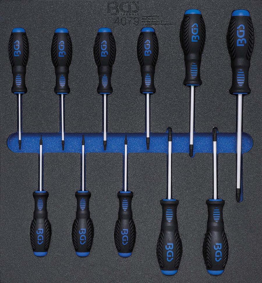 BGS 4079 | Werkstattwageneinlage 2/3: Schraubendreher T-Profil (für Torx) | T6 - T40 | 11-tlg. Satz,