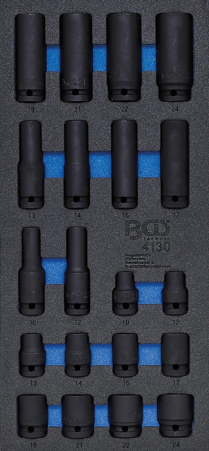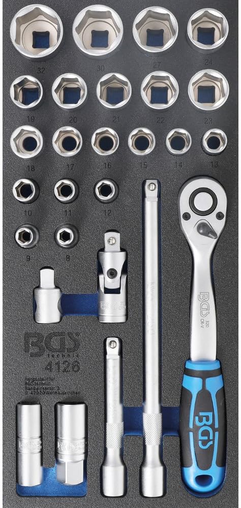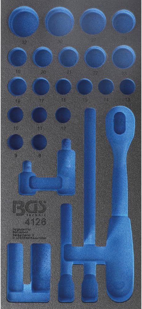 BGS 4126 | Werkstattwageneinlage 1/3: Steckschlüssel-Satz | 27-tlg. Einlage inkl. Werkzeug, Einlage