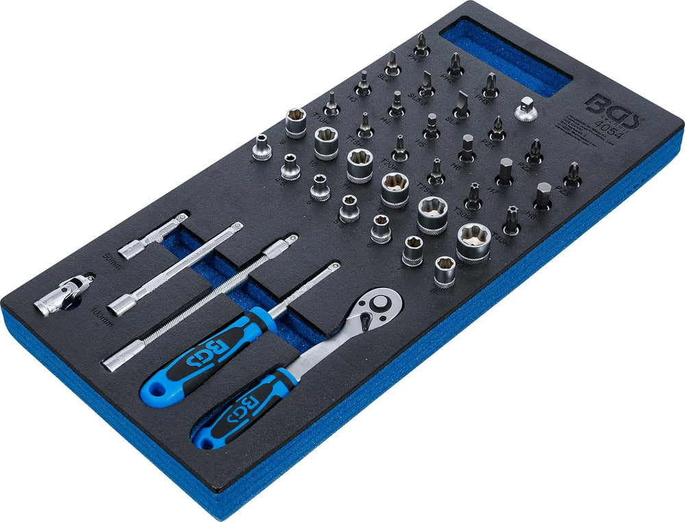 BGS 4054 | Werkstattwageneinlage 1/3: Steckschlüssel-Satz | 41-tlg. Einlage inkl. Werkzeug, Einlage