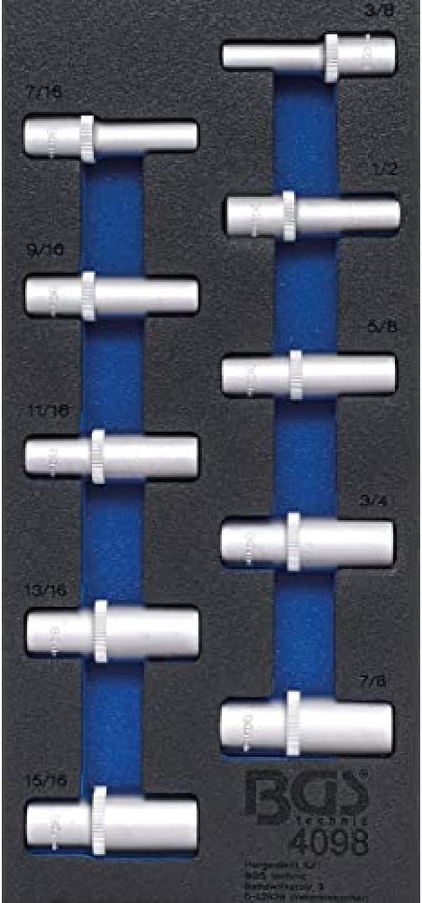 BGS 4098 | Werkstattwageneinlage 1/3: Steckschlüssel-Einsätze Sechskant | in Zollgrössen | tief | 10