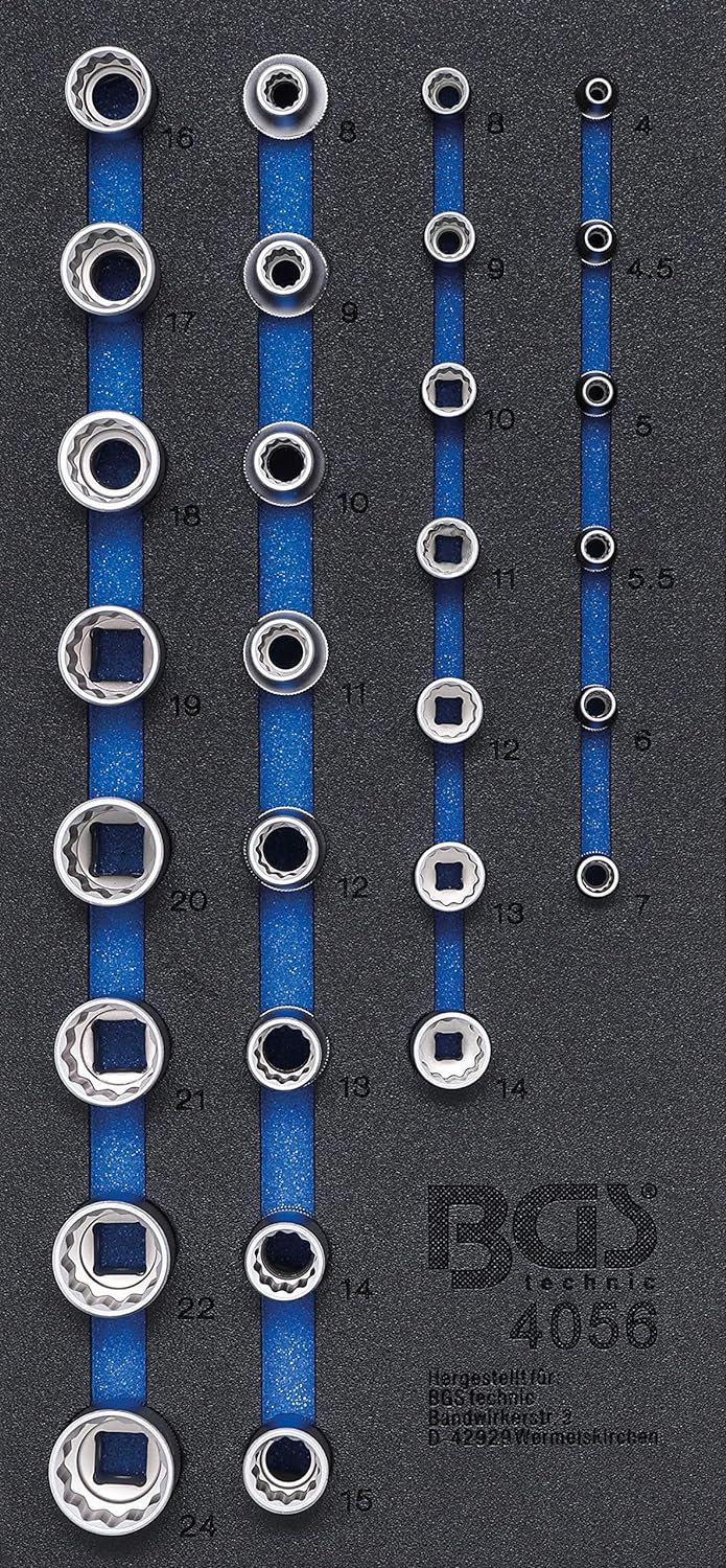 BGS 4056 | Werkstattwageneinlage 1/3: Steckschlüssel-Einsätze Zwölfkant | 6,3 mm (1/4") / 12,5 mm (1