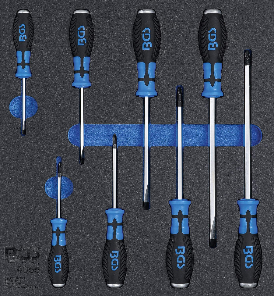 BGS 4055 | Werkstattwageneinlage 2/3: Kreuz- und Schlitz-Schraubendreher | 8-tlg. Satz, Satz