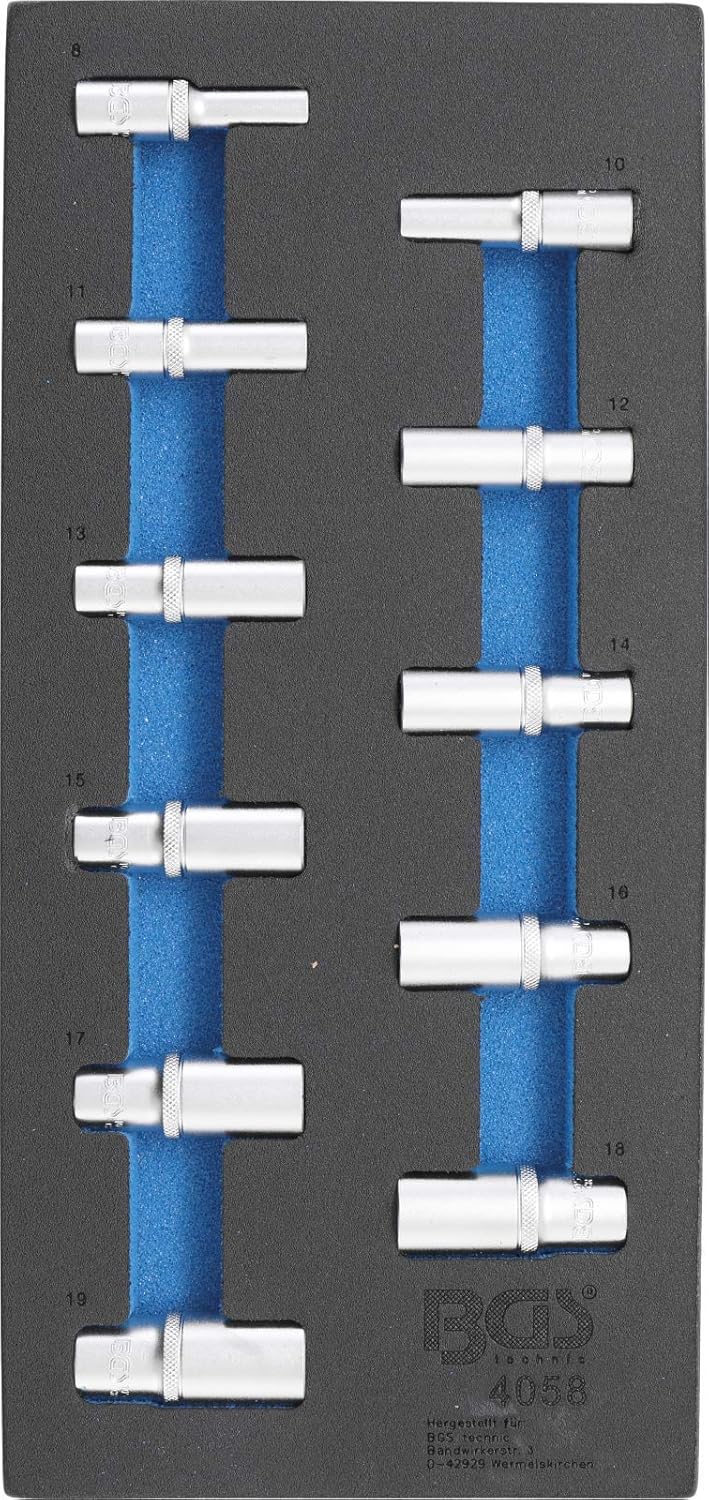BGS 4058 | Werkstattwageneinlage 1/3: Steckschlüssel-Einsätze Sechskant | tief | 11-tlg. Satz, Satz