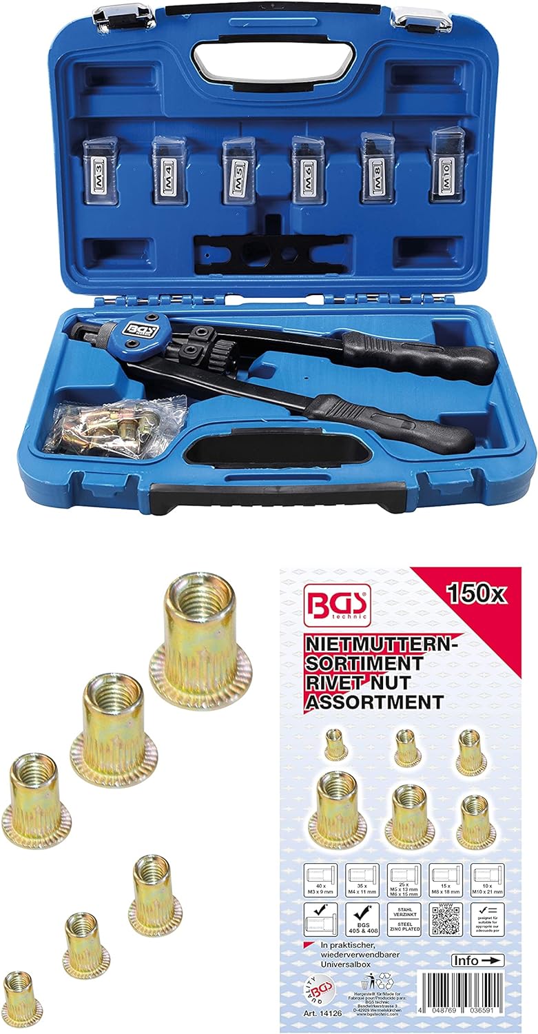 BGS 408 | Nietmutternzangen-Satz | 68-tlg. | M3 - M4 - M5 - M6 - M8 - M10 | inkl. Nietmuttern + Niet