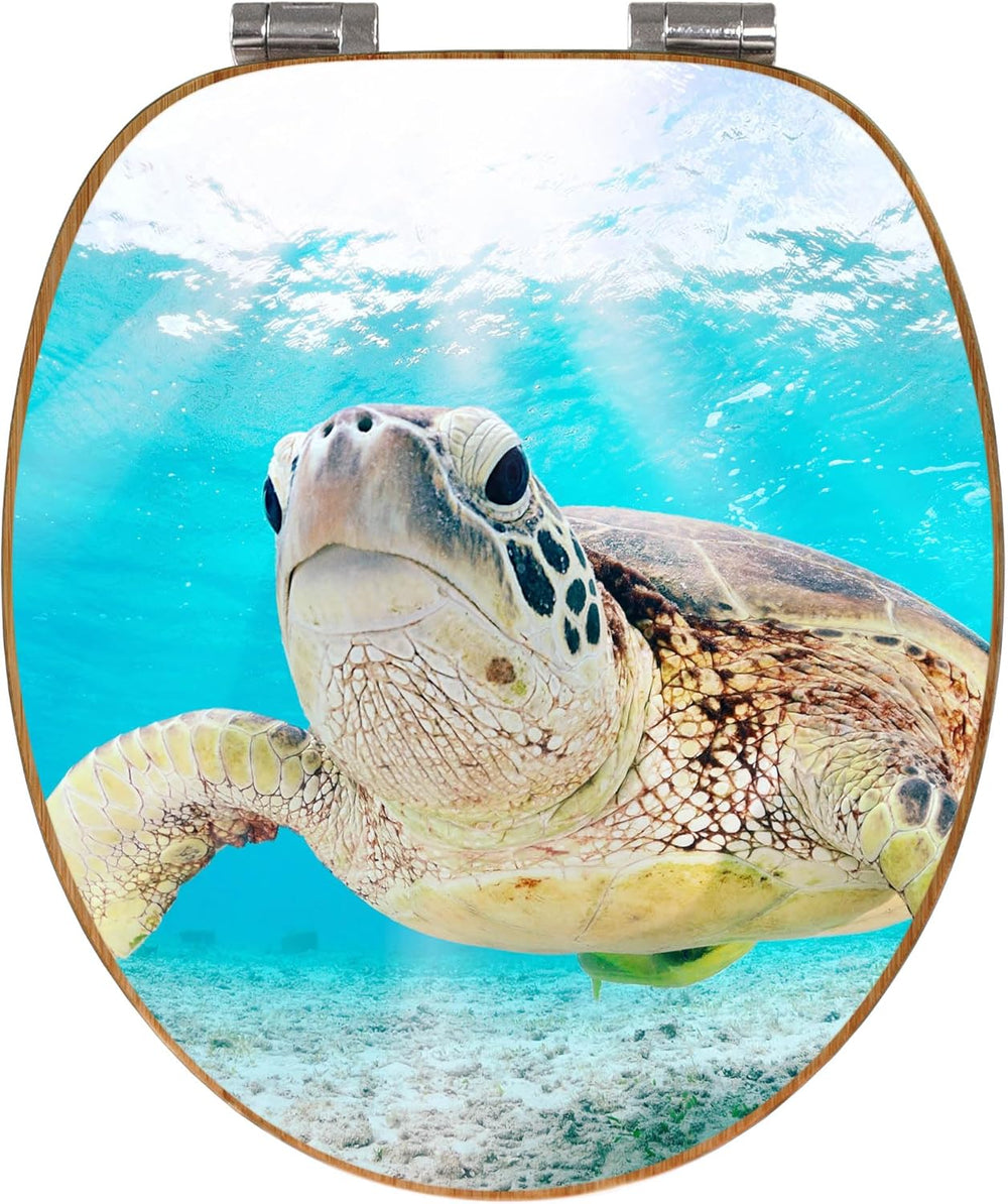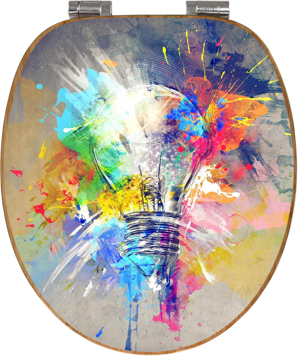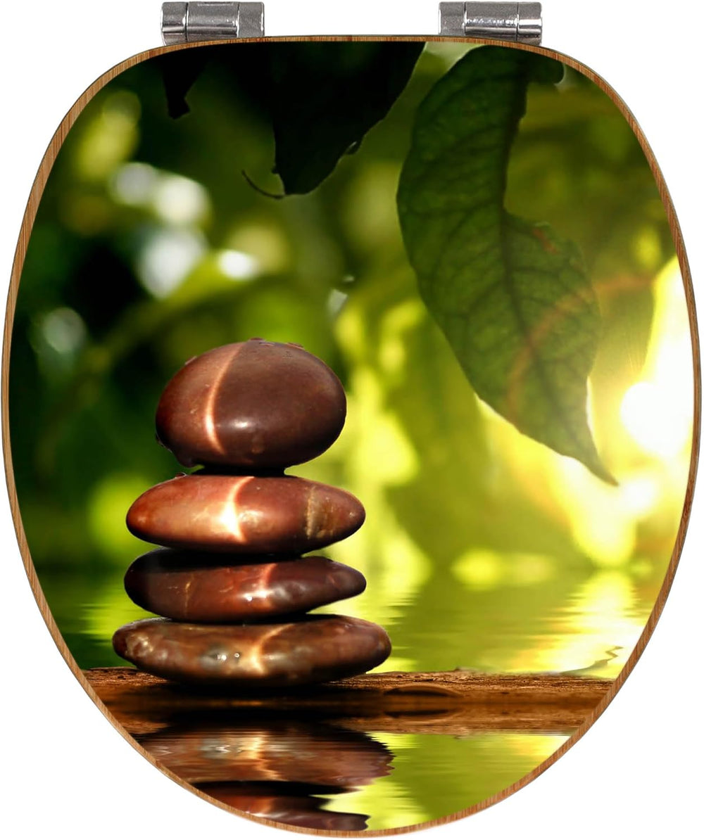 banjado® Design WC Sitz Bambus Absenkautomatik mit Motiv Idee/Toilettendeckel mit Absenkautomatik Ho