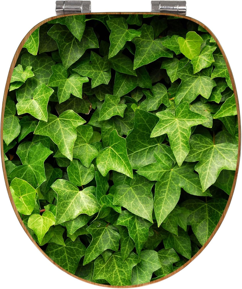 banjado® Design WC Sitz Bambus Absenkautomatik mit Motiv Efeu/Toilettendeckel mit Absenkautomatik Ho