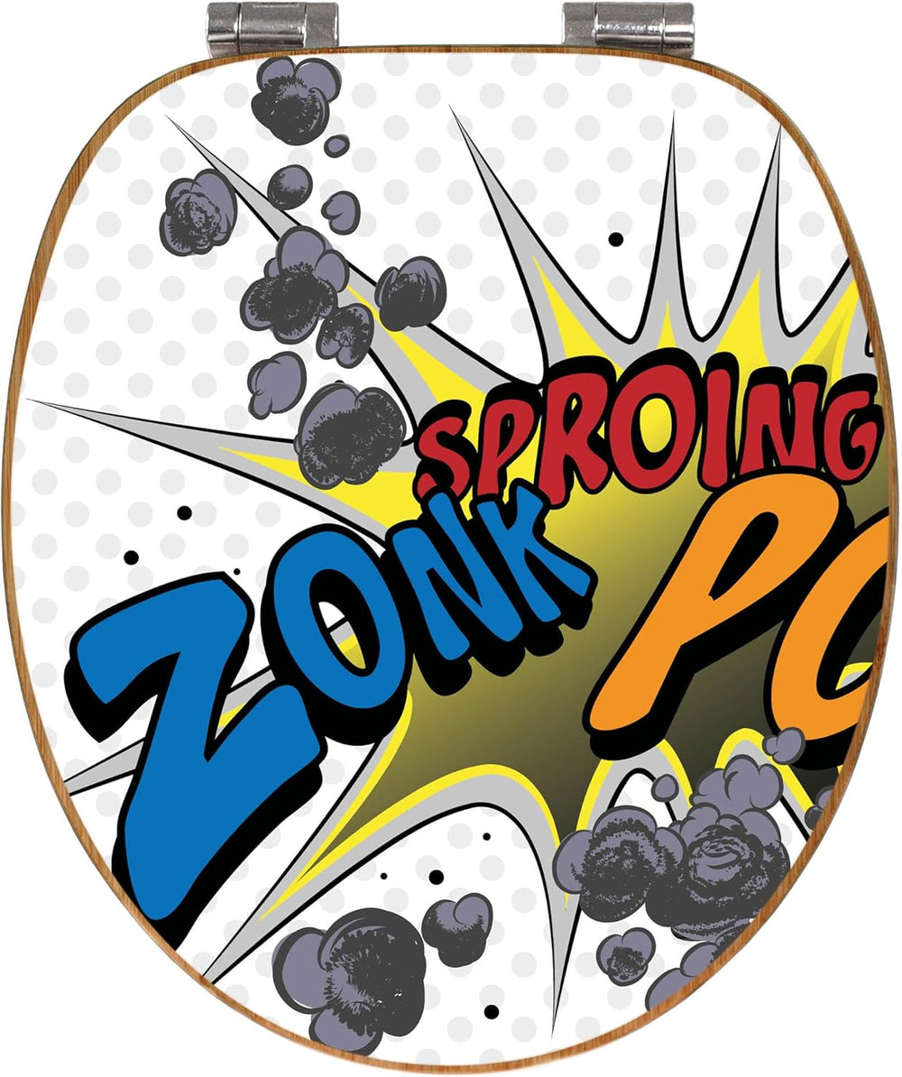 banjado® Design WC Sitz Bambus Absenkautomatik mit Motiv Comic/Toilettendeckel mit Absenkautomatik H