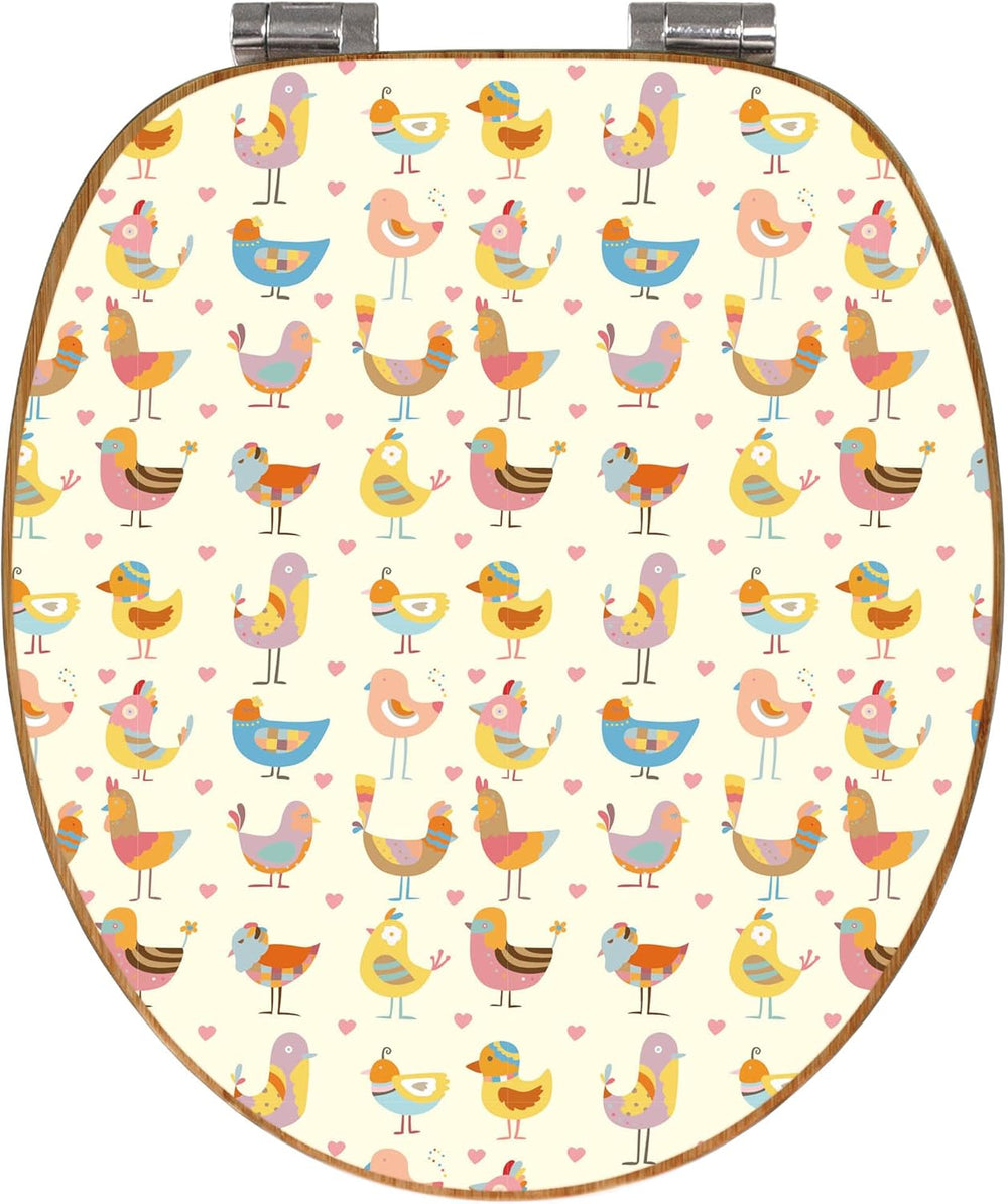 banjado® Design WC Sitz Bambus Absenkautomatik mit Motiv Lustige Vögel/Toilettendeckel mit Absenkaut