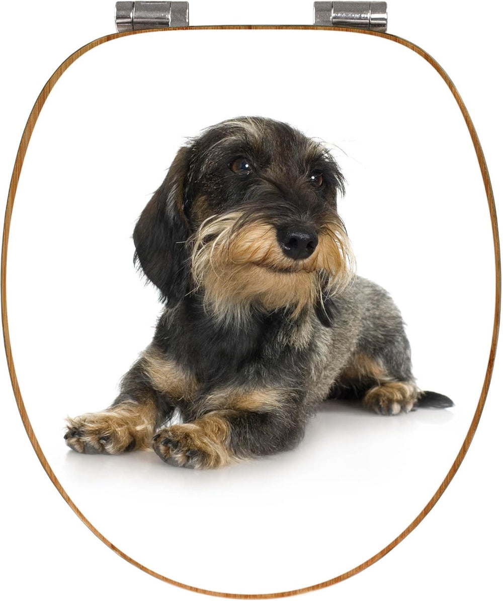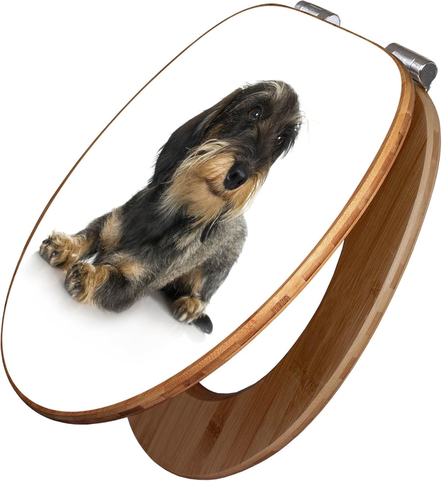 banjado® Design WC Sitz Bambus Absenkautomatik mit Motiv Dackel/Toilettendeckel mit Absenkautomatik