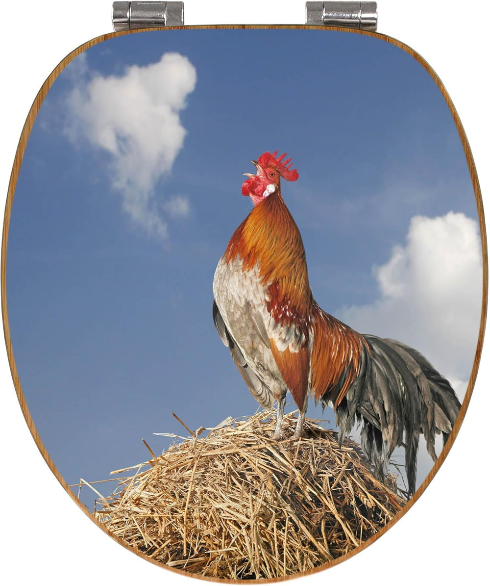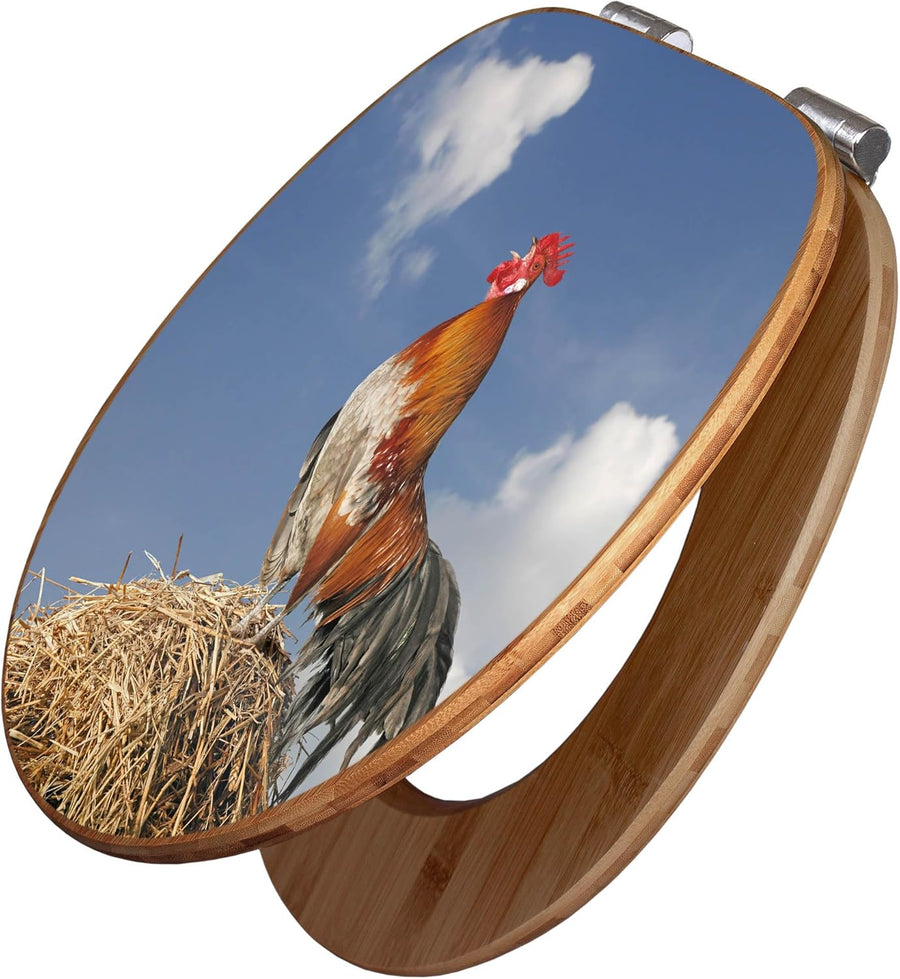 banjado® Design WC Sitz Bambus Absenkautomatik mit Motiv Hahn/Toilettendeckel mit Absenkautomatik Ho