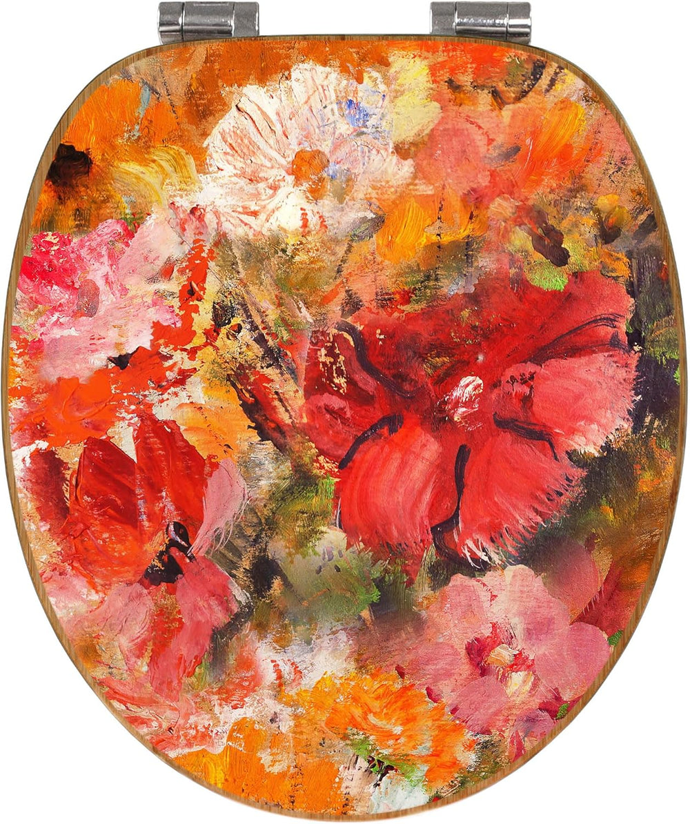 banjado® Design WC Sitz Bambus Absenkautomatik mit Motiv Mohnblumen/Toilettendeckel mit Absenkautoma