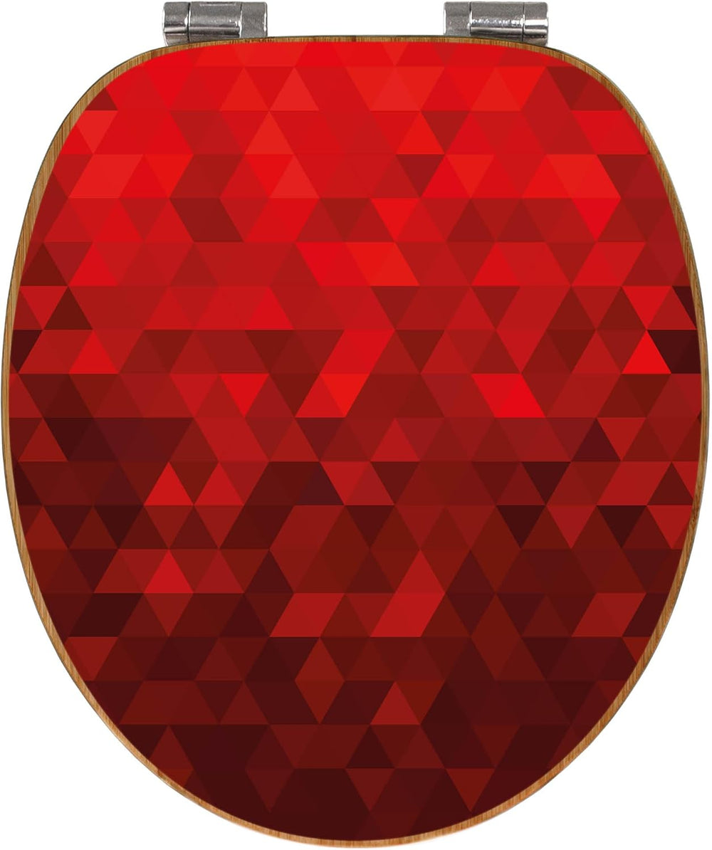banjado® Design WC Sitz Bambus Absenkautomatik mit Motiv Dreiecke Rot/Toilettendeckel mit Absenkauto