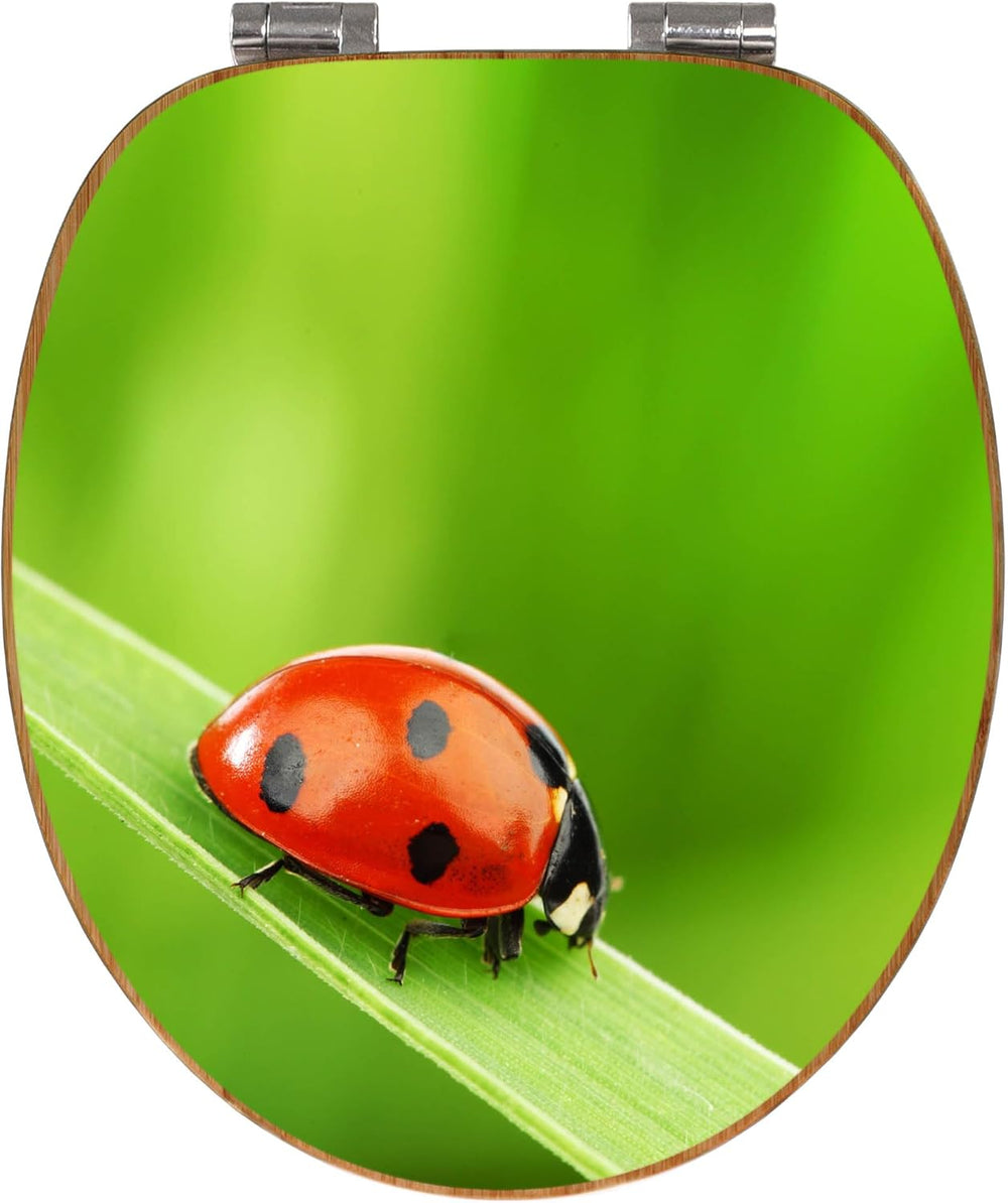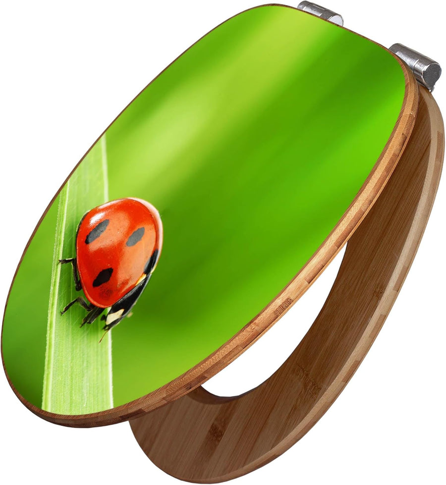 banjado® Design WC Sitz Bambus Absenkautomatik mit Motiv Marienkäfer/Toilettendeckel mit Absenkautom