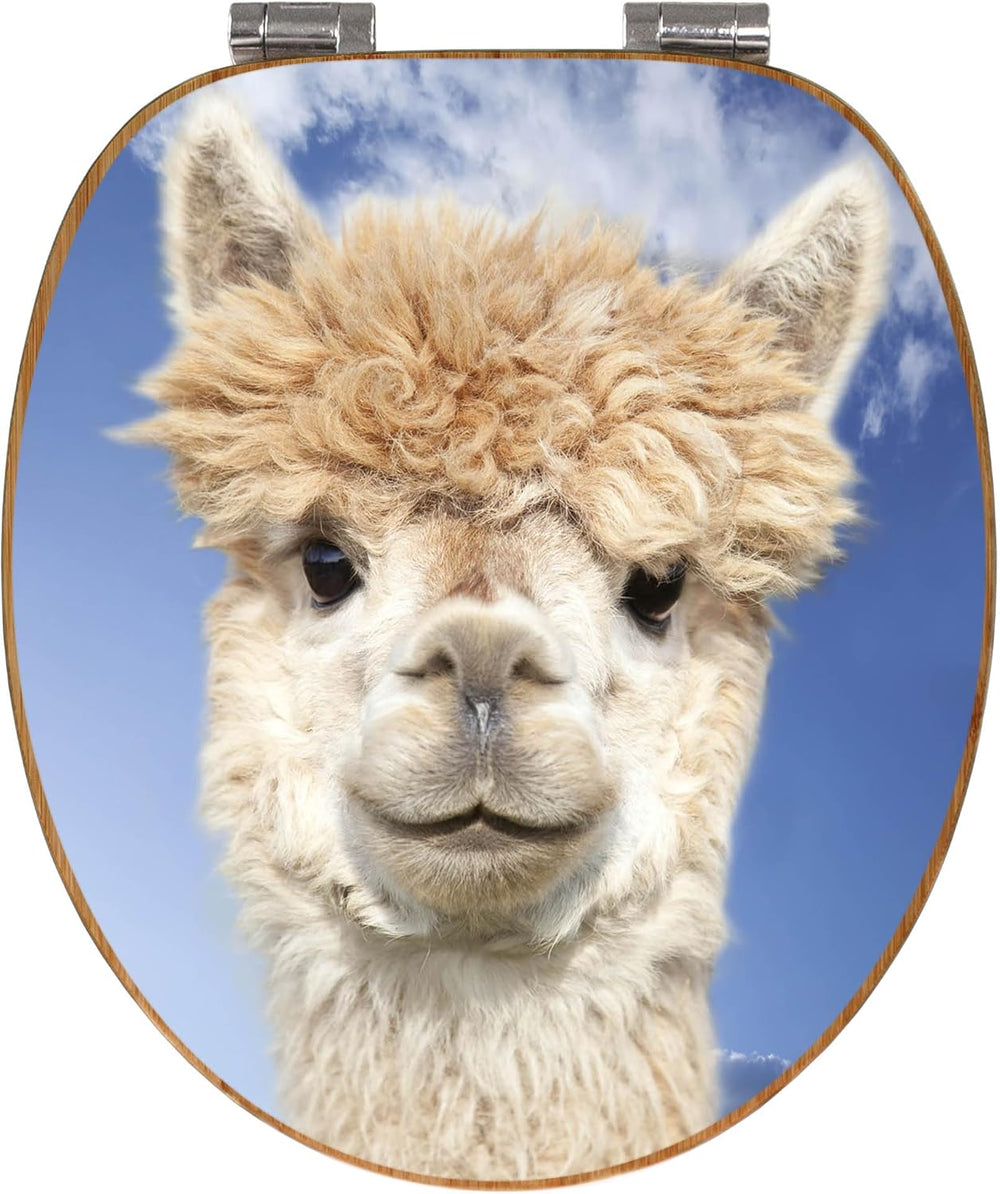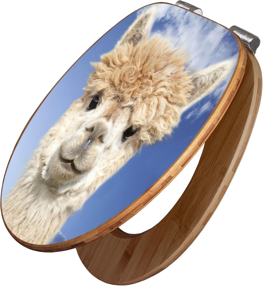 banjado® Design WC Sitz Bambus Absenkautomatik mit Motiv Lama/Toilettendeckel mit Absenkautomatik Ho
