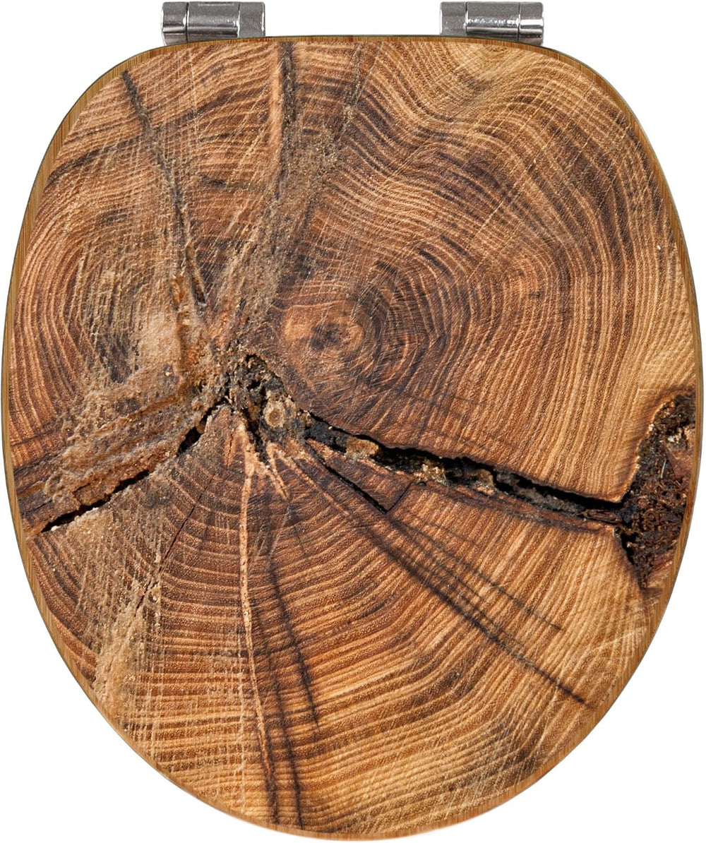 banjado® Design WC Sitz Bambus Absenkautomatik mit Motiv Jahresringe/Toilettendeckel mit Absenkautom