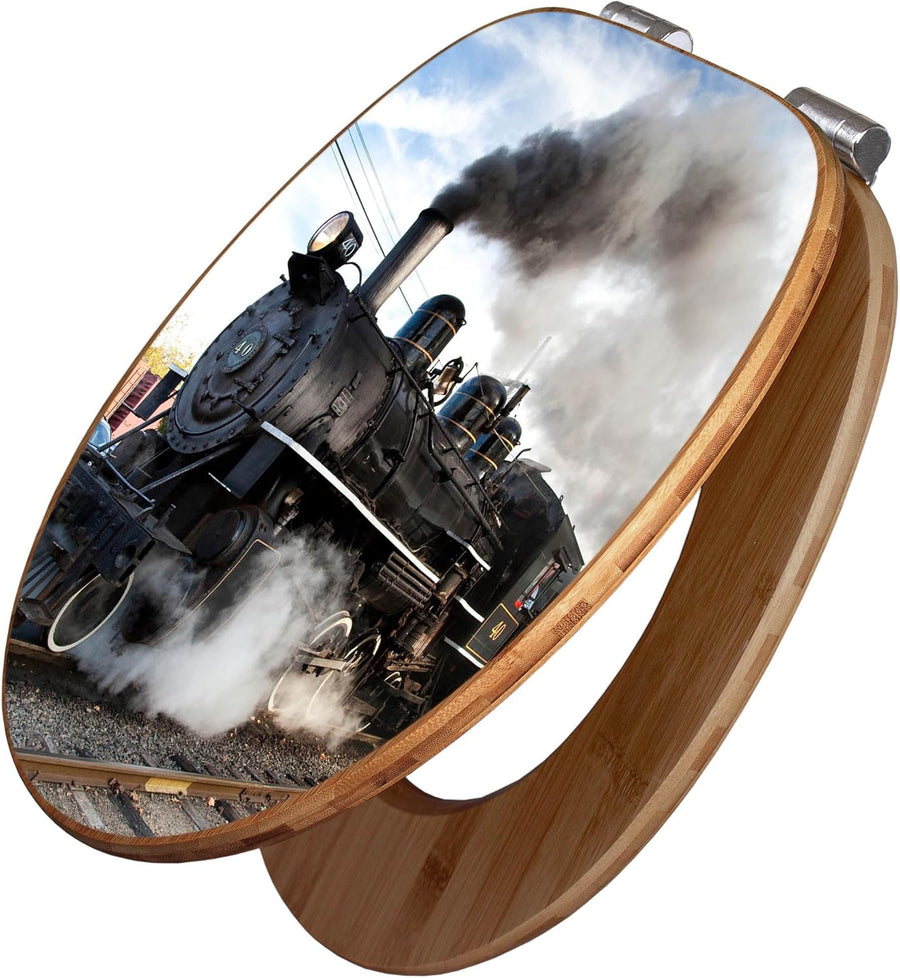 banjado® Design WC Sitz Bambus Absenkautomatik mit Motiv Dampflok/Toilettendeckel mit Absenkautomati