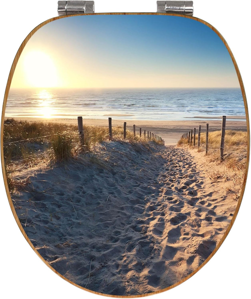 banjado® Design WC Sitz Bambus Absenkautomatik mit Motiv Nordseestrand/Toilettendeckel mit Absenkaut