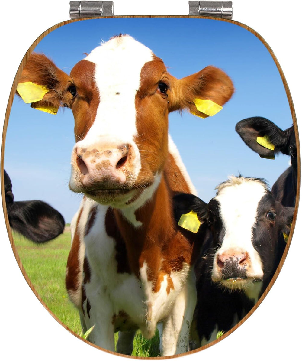 banjado® Design WC Sitz Bambus Absenkautomatik mit Motiv Kühe/Toilettendeckel mit Absenkautomatik Ho
