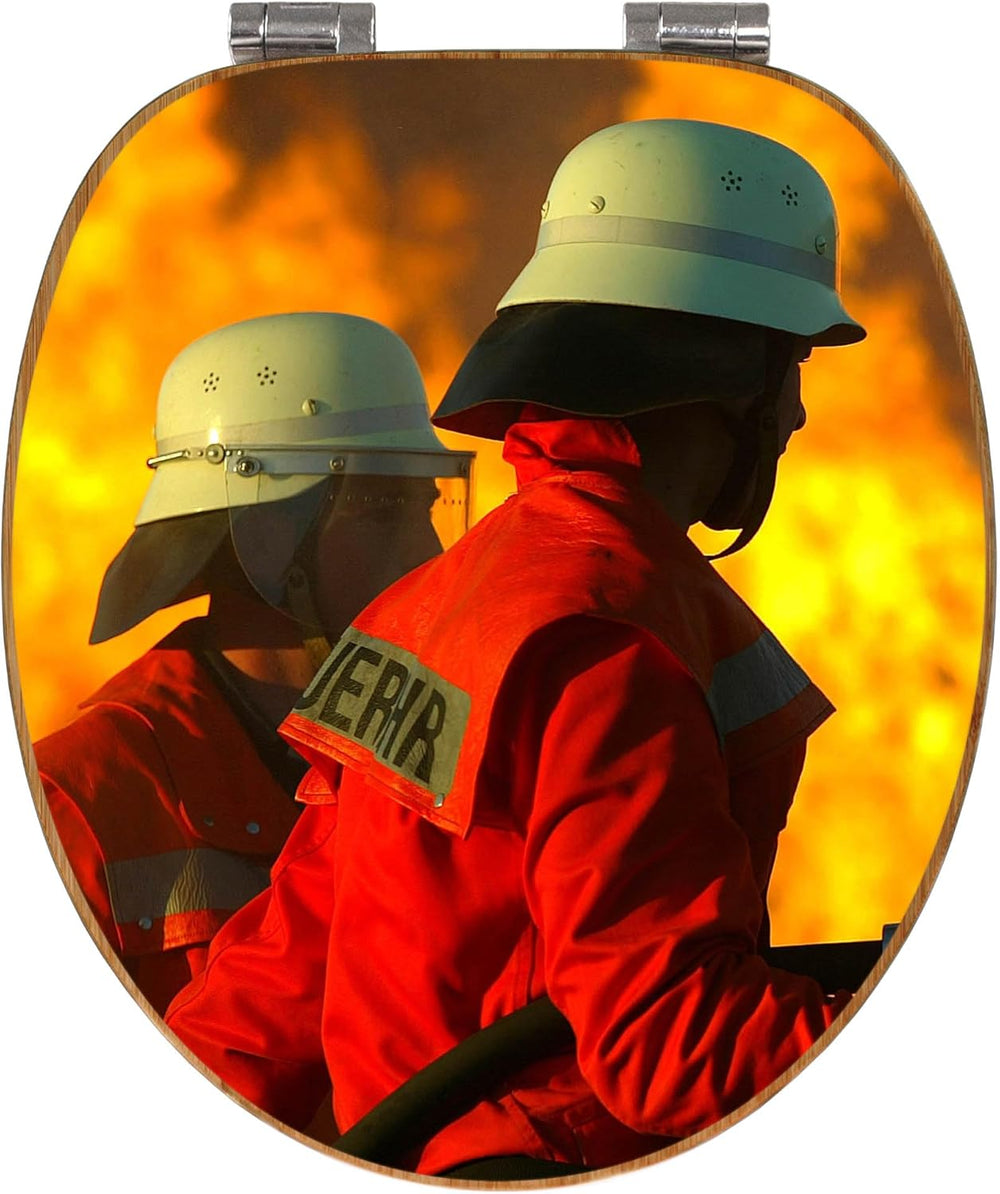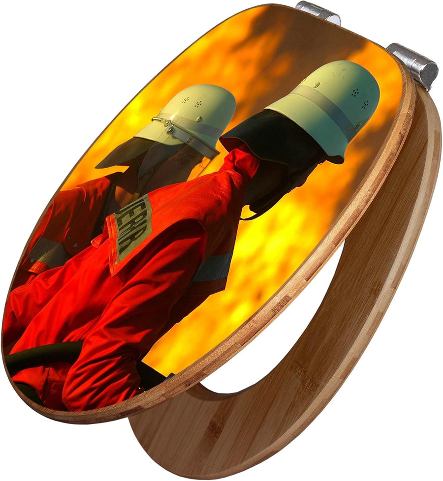 banjado® Design WC Sitz Bambus Absenkautomatik mit Motiv Feuer/Toilettendeckel mit Absenkautomatik H