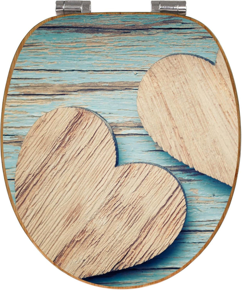banjado® Design WC Sitz Bambus Absenkautomatik mit Motiv Holz Herzen/Toilettendeckel mit Absenkautom