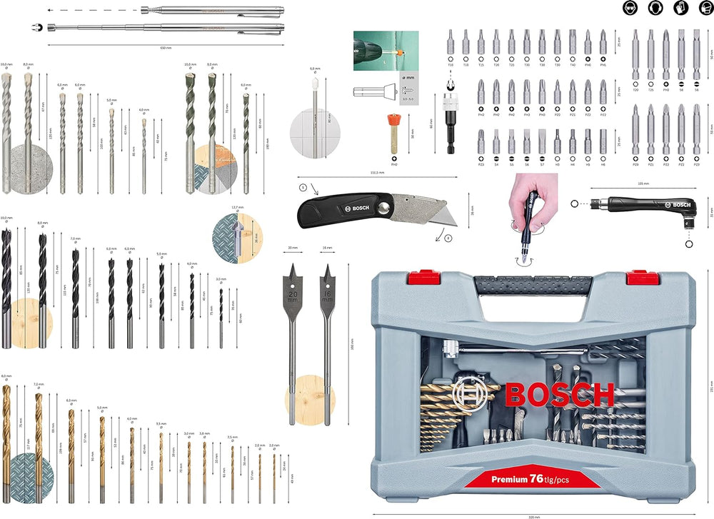 Bosch 76tlg. X-Line Titanium Bohrer- und Schrauberbit-Set (für Holz, Stein und Metall, inkl. Schneid
