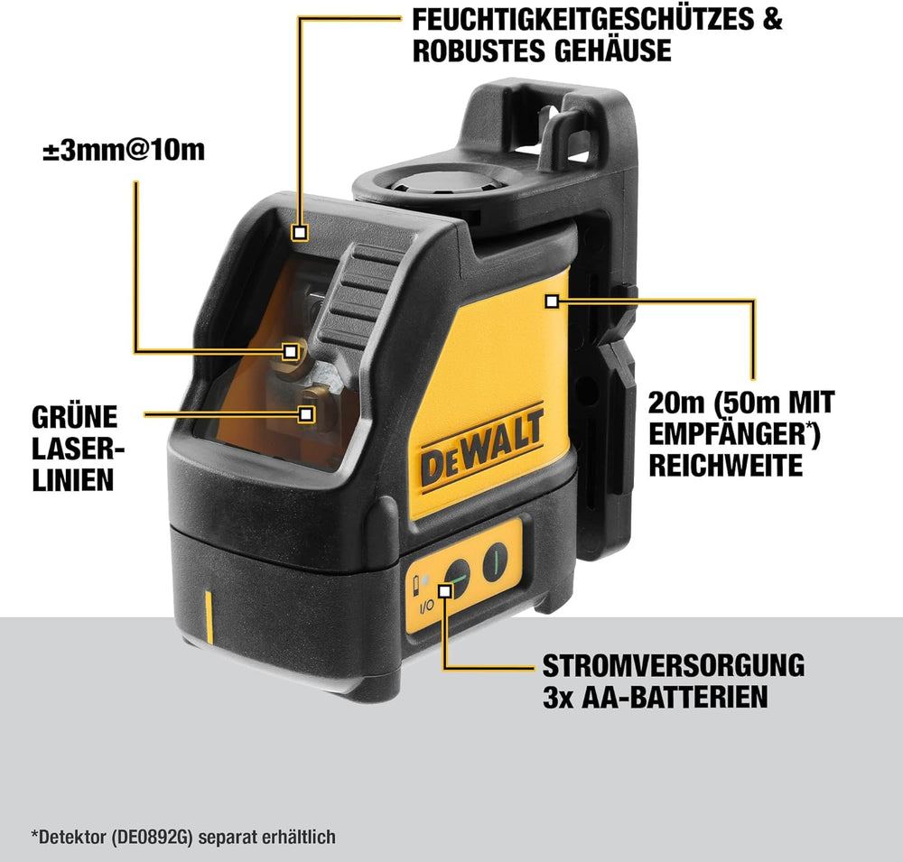 Dewalt Kreuzlinienlaser DW088CG (Grüner Laser, Laserklasse 2, selbstnivellierenden, ¼“ Stativaufnahm