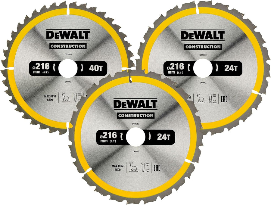 DEWALT Kreissägeblatt-Set DT1962 (für Stationärsägen, Sägeblatt-ø: 216/30 mm, Schnittbreite: 2,6 mm,