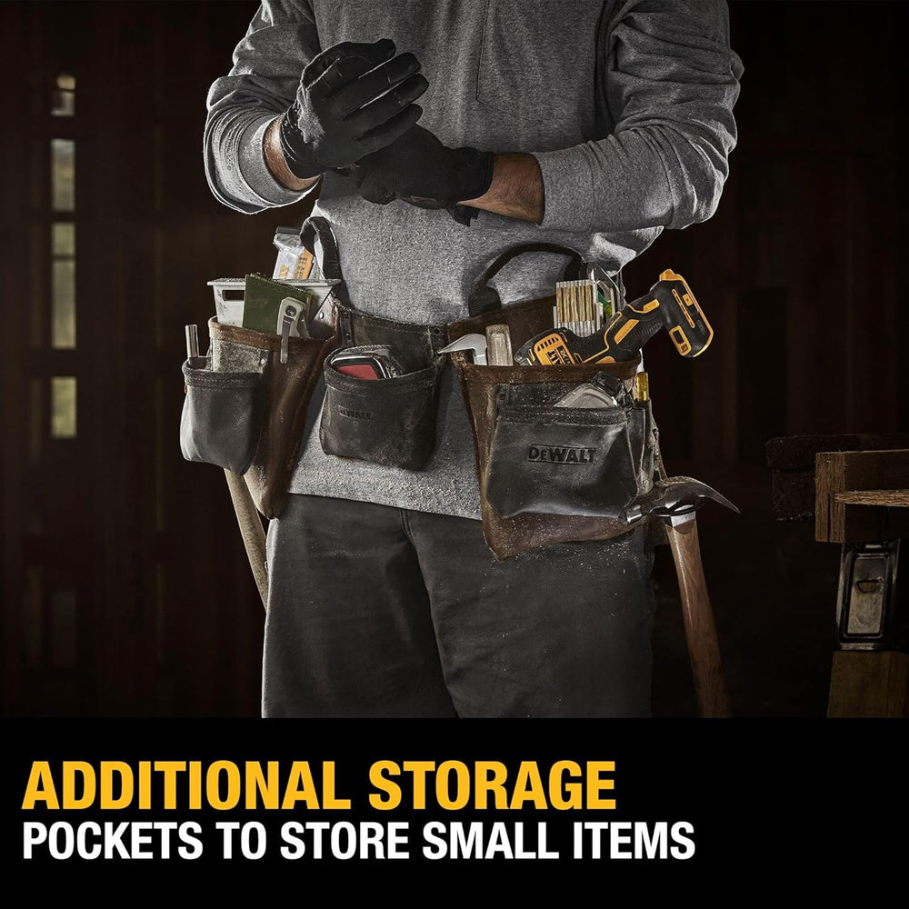 DEWALT Leder Werkzeuggürtel, langlebig, 11 Tasche Professionelle Gürtel (DWST550112) Werkzeugschürze