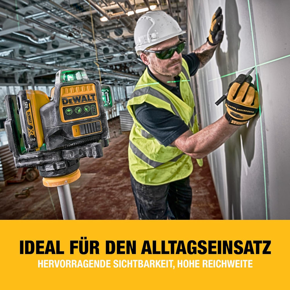 Dewalt Linienlaser (selbstnivellierender 3x360°,10,8V, 2Ah, manueller Modus ab 4° (Blinkmodus), Arbe