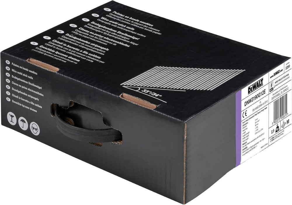 DeWalt Nagel (für Akku-Nagler, 34 Grad, D-Kopf-Nägel, drahtgebunden 3,1 x 90 mm Glatt G12, 2200 Stüc