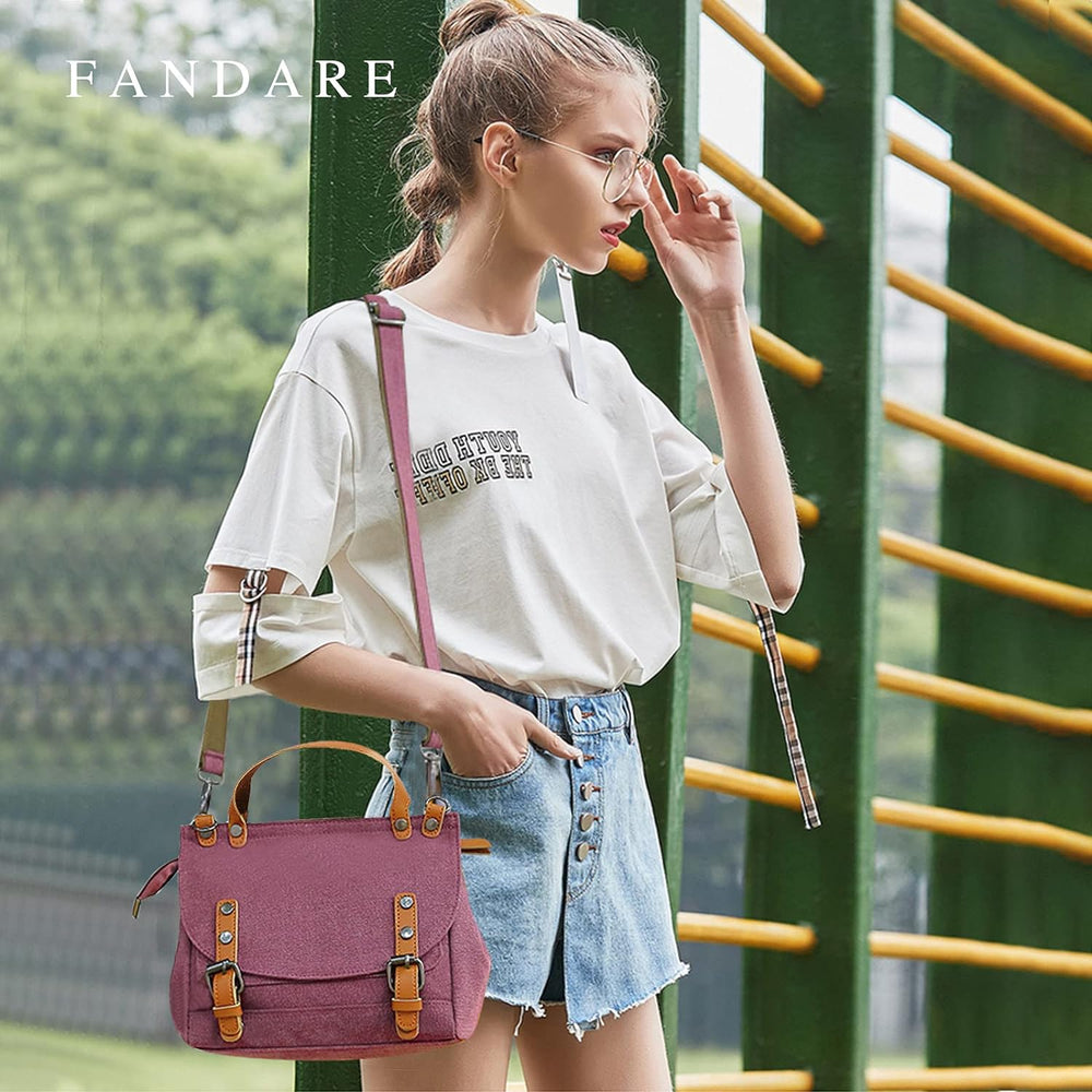 FANDARE Tragbar Umhängetasche Damen Mittel Schultertasche Leinwand Handtaschen Frauen Freizeit Sport