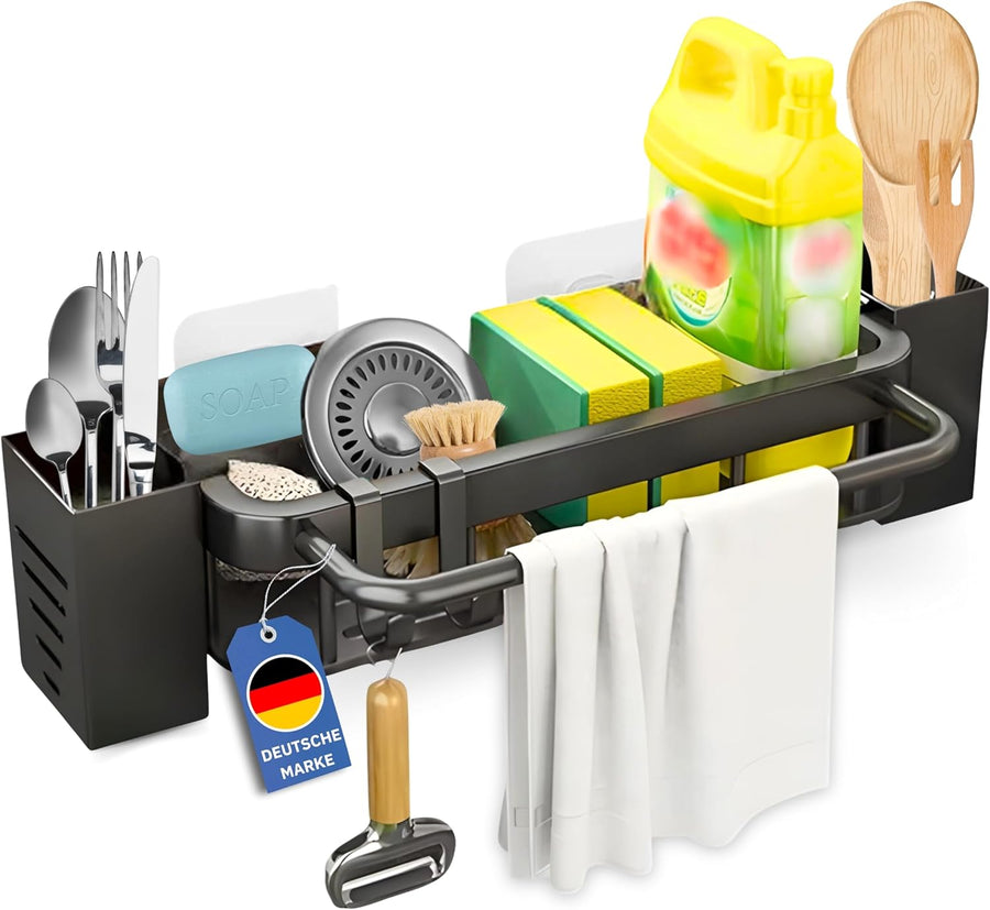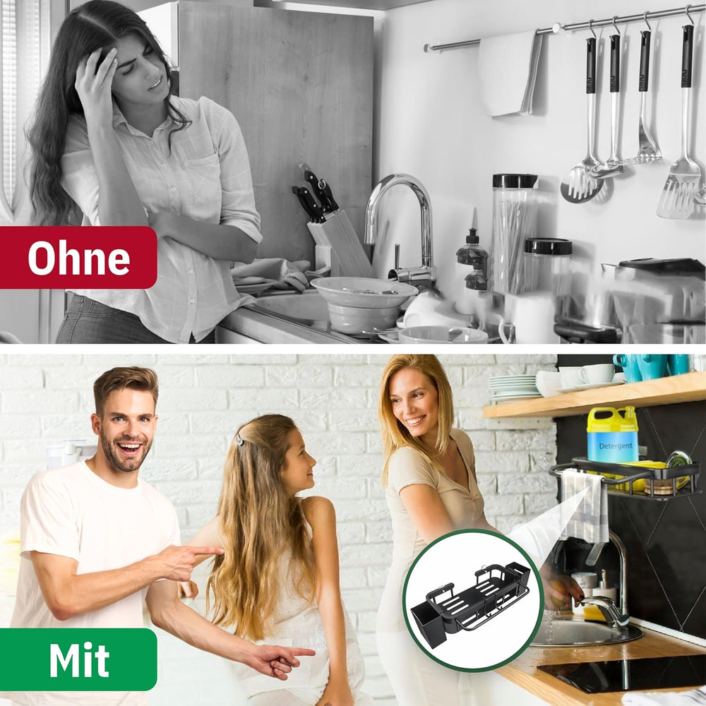 Küchen Spülbecken Organizer Schwarz Spülmittelspender Schwammhalter Küchenutensilienhalter Badezimme