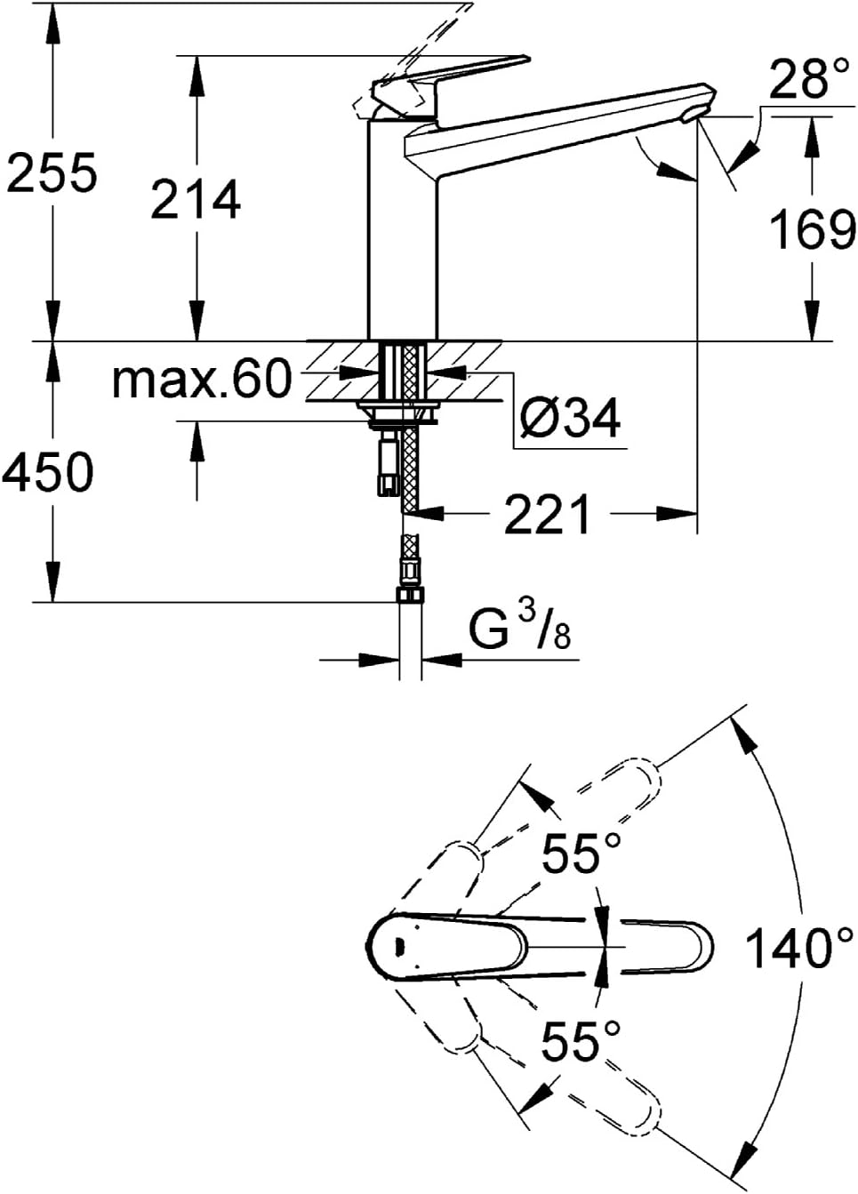 GROHE Euroeco | Küchenarmatur - Spültischbatterie | 32750000, Silber, Chrom, Chrom